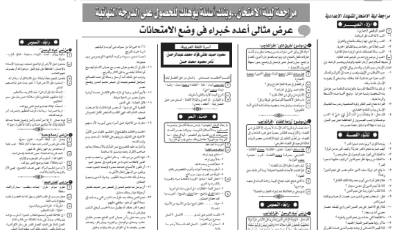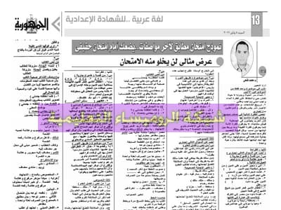 مراجعة ليلة الامتحان للغة العربية للصف الثالث الاعدادى ترم اول 2019 ملحق الجمهورية عدد 16 1 2019