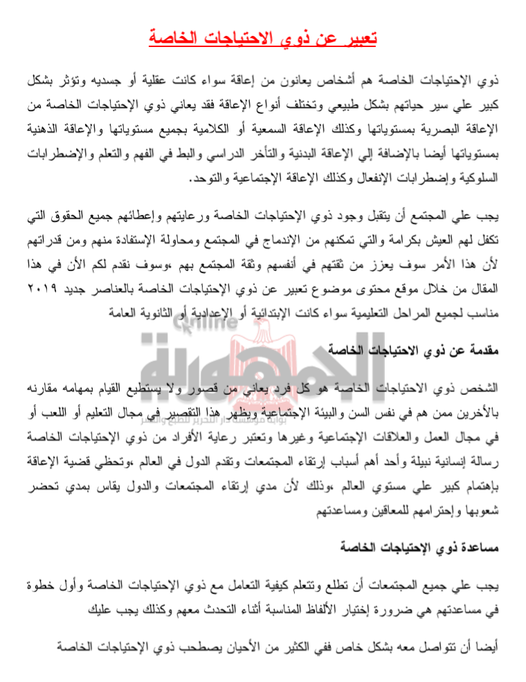 موضوعات تعبير متوقعة للثانوية العامة عن التنمر وذوي الاحتياجات الخاصة والاحترام بين الناس والتنمية البشرية