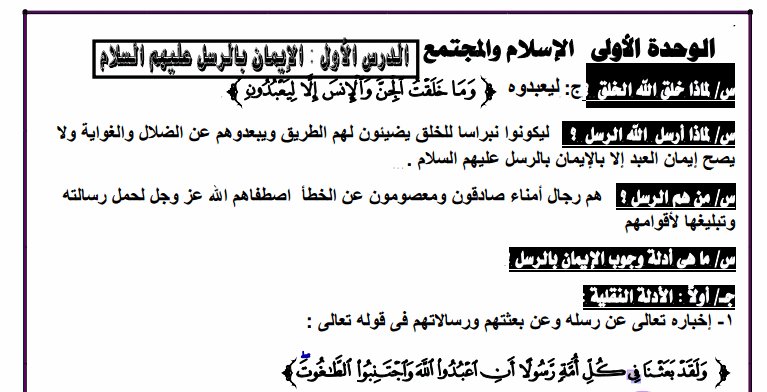 ملخص التربية الدينية للصف الثالث الثانوى 2016