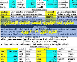 مذكرة انجليزى للصف الثالث الاعدادى الترم الاول 2019