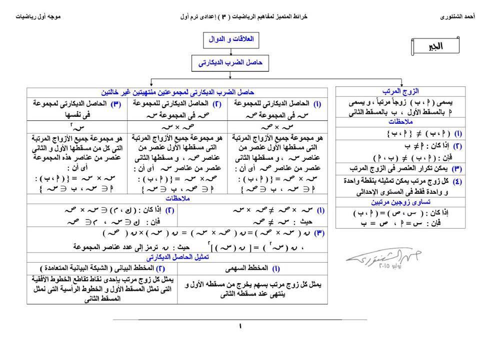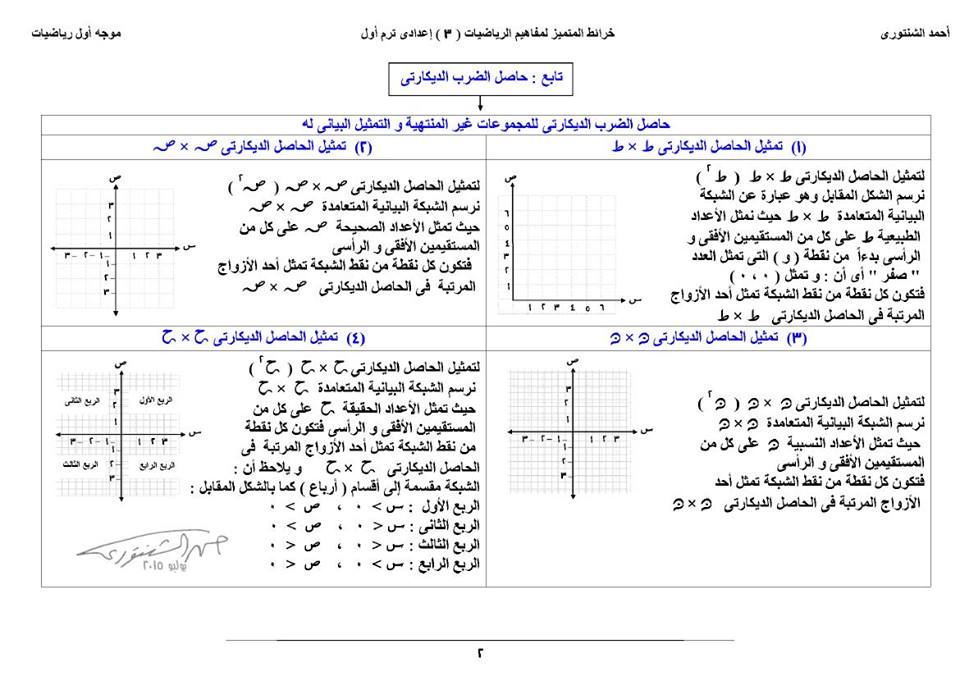 ملخص منهج الرياضيات للصف الثالث الاعدادى الترم الاول 2016 الاستاذ احمد شنتورى
