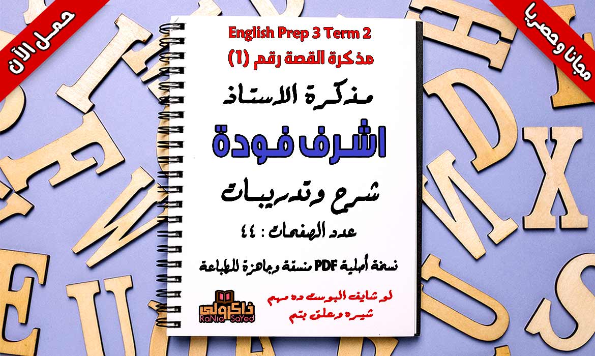 تحميل مذكرة قصة اللغة الانجليزية للصف الثالث الاعدادى ترم ثانى للاستاذ اشرف فودة