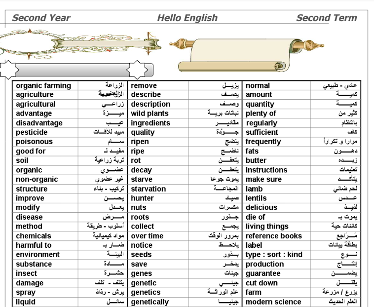 مذكرة ورد للغة الانجليزية للثانى الثانوى منهج الترم الثانى كاملة لمستر بيومى غريب