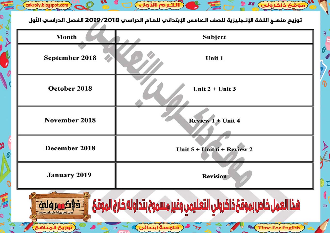 توزيع مناهج جميع مواد الصف الخامس الابتدائي للترم الأول 2018 2019