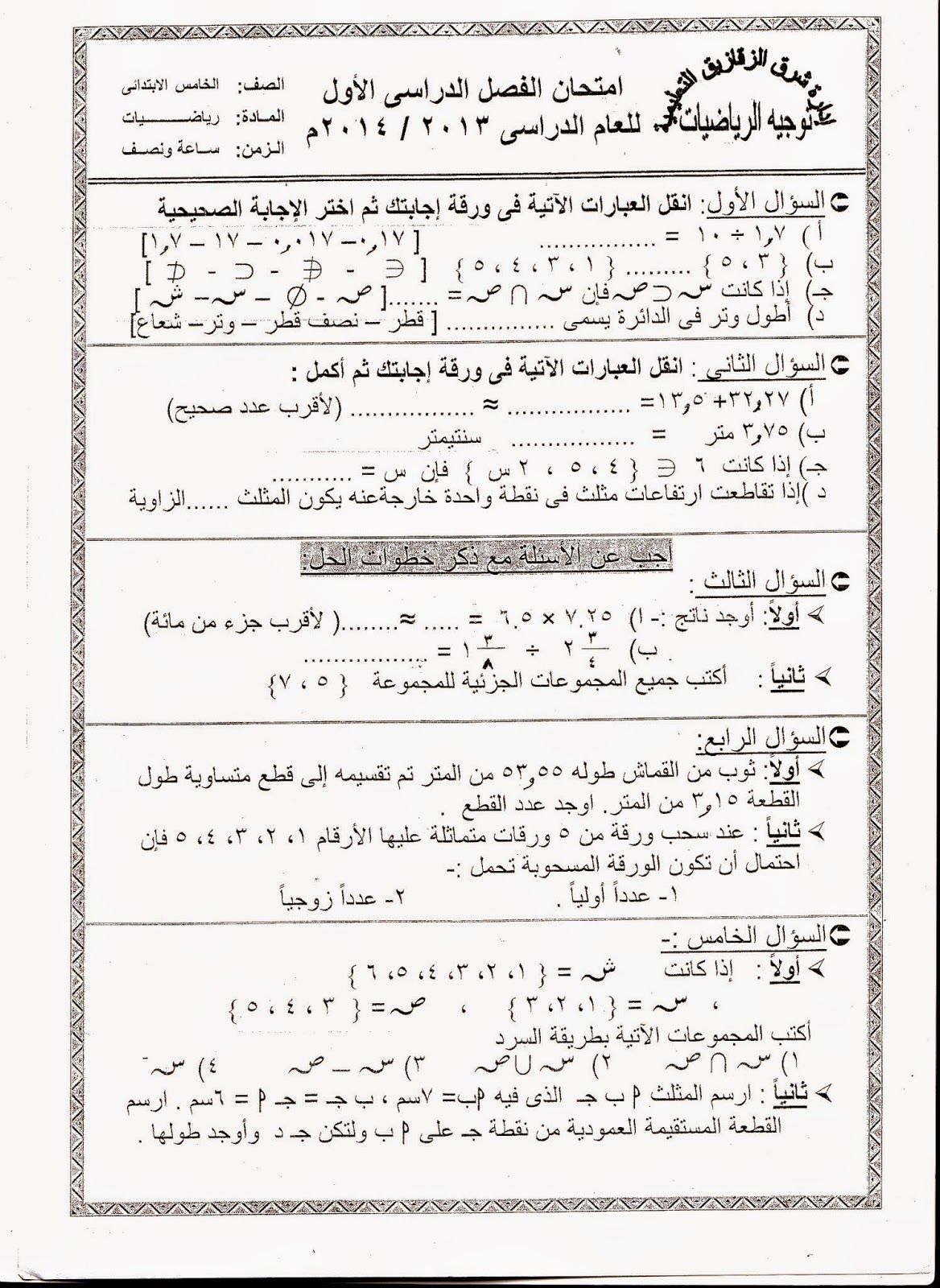 امتحان الدراسات الإجتماعية للصف السادس الابتدائى الترم الثانى 2014 دور اول لمحافظة الشرقية