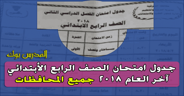 جدول امتحان الصف الرابع الابتدائي آخر العام 2018 جميع المحافظات جدول امتحانات رابعة ابتدائي نهاية العام محافظة القاهرة الأسكندرية الجيزة المنيا أسيوط سوهاج قنا