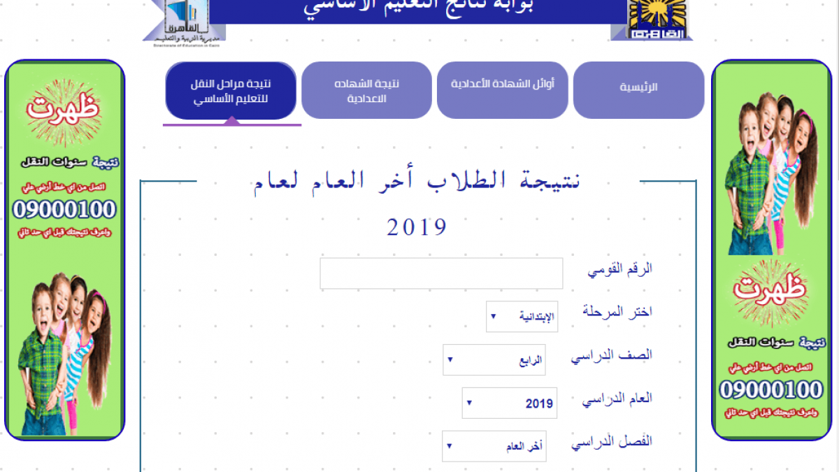 نتيجة الصف الرابع الابتدائى 2016 برقم الجلوس محافظة القاهرة مصر العربية