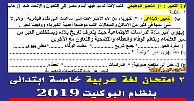 امتحان عربي للصف الخامس الابتدائي 2019 ترم اول بنظام البوكليت حمل من هنا أقوي اختبار لغة عربية خامسة ابتدائي بالنظام الجديد