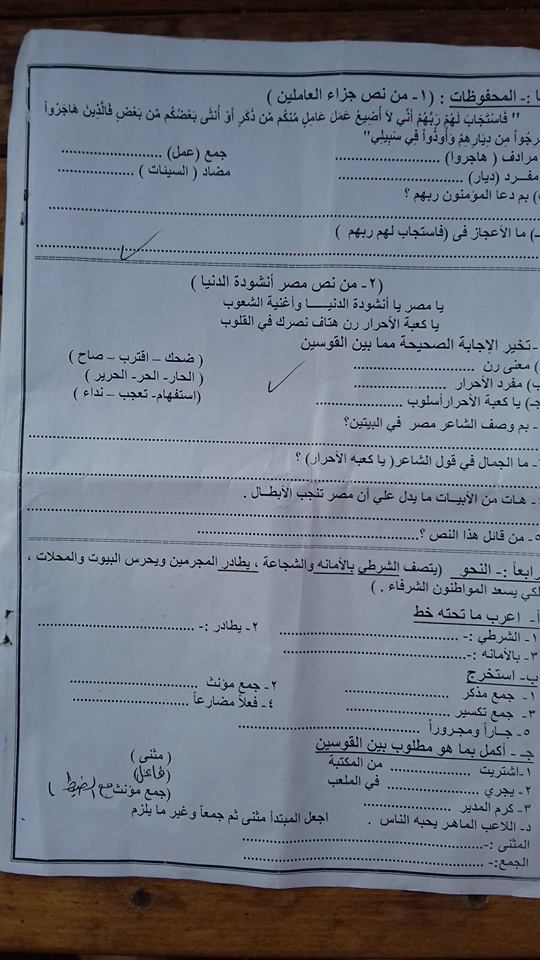 مجموعة امتحانات للصف الخامس لغة عربية نصف الفصل الاول ميدترم لمجموعة مدارس من انحاء الجمهورية