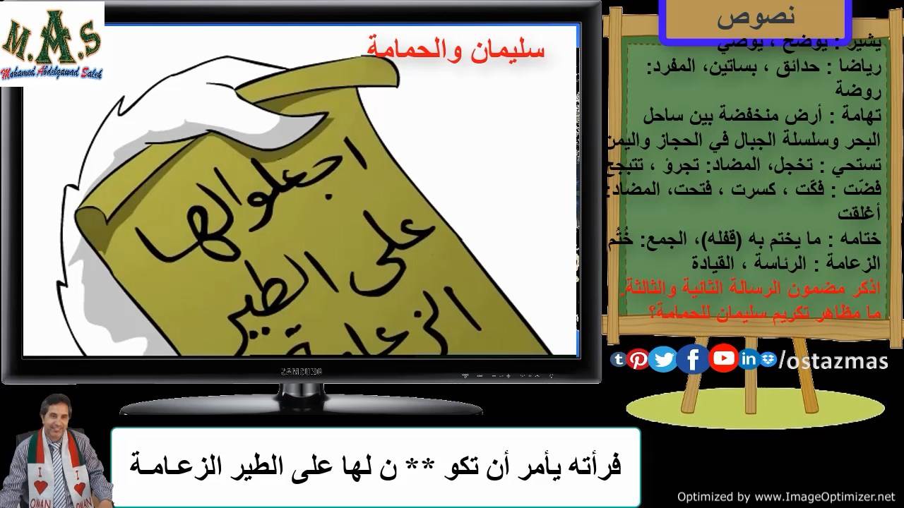 شرح درس سليمان والحمامة للاول الاعدادي Youtube