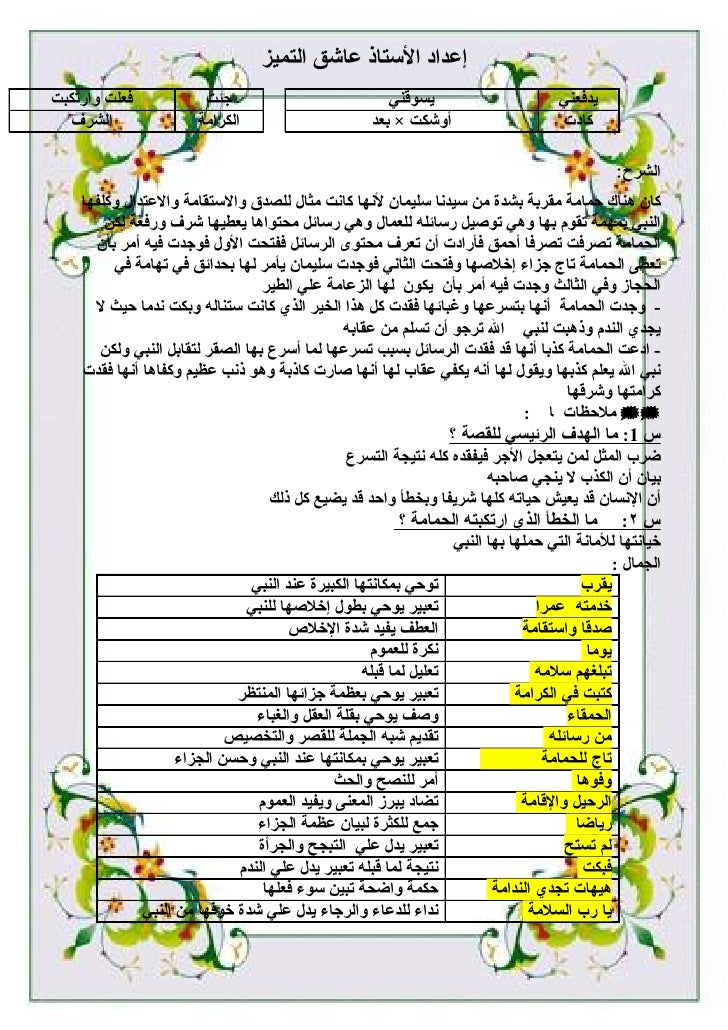 النصوص مراجعة أسئلة نص سليمان والحمامة للصف الأول الإعدادي Kahlawy Hassan