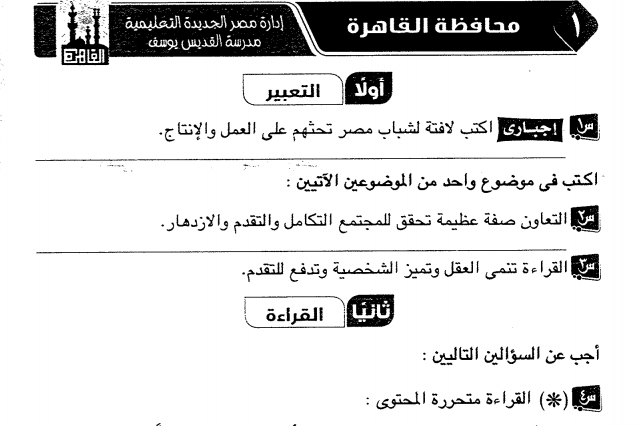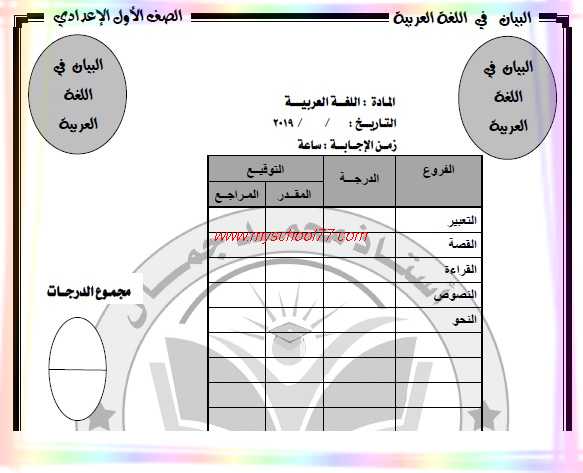 نماذج امتحانات للصف الاول الاعدادى لغة عربية