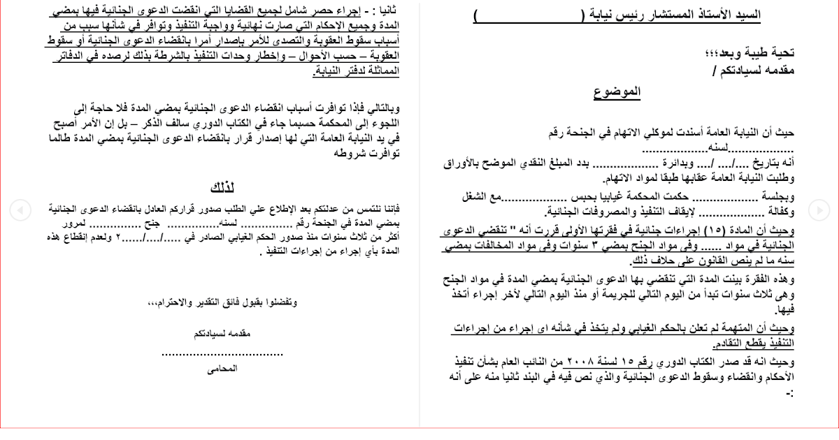 صيغة طلب إنقضاء دعوى جنائية بمضى المدة مقدم لرئيس النيابة Word