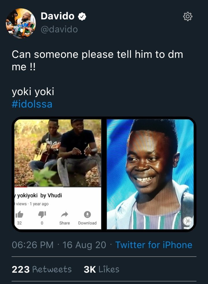 Idolssa My Yoki Yoki Singer Vhudi Impresses Mzansi Even Gets Nigerian Superstar Davido S Attention Watch Celebs Now